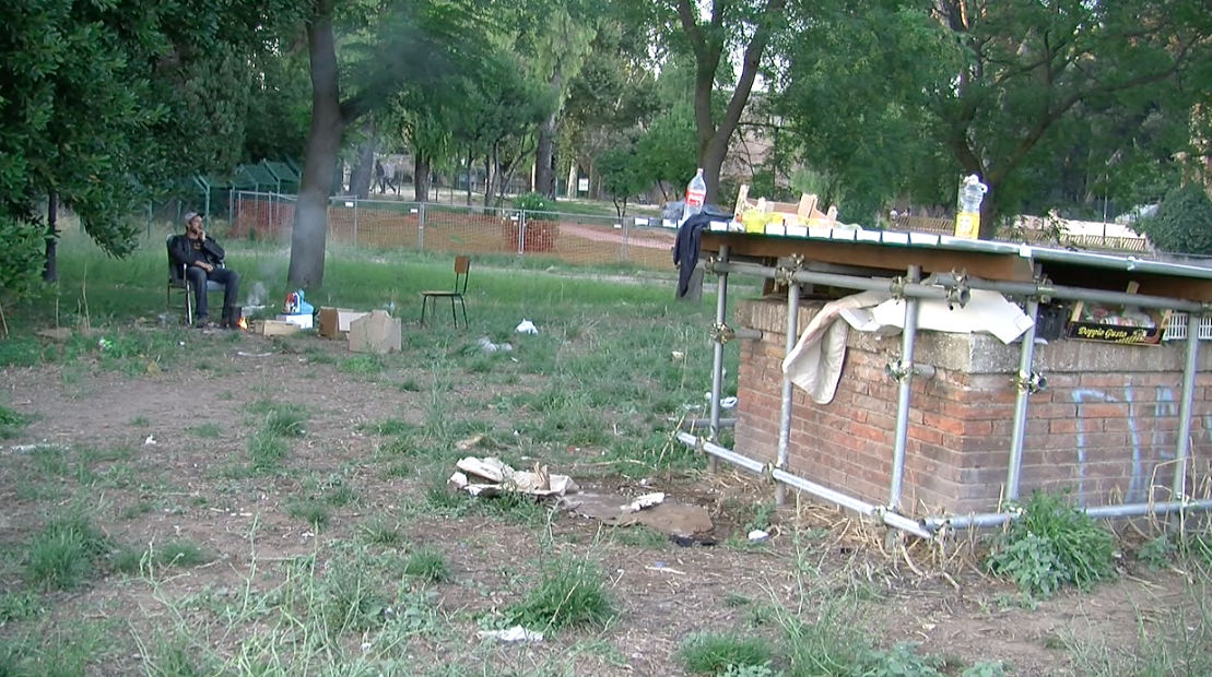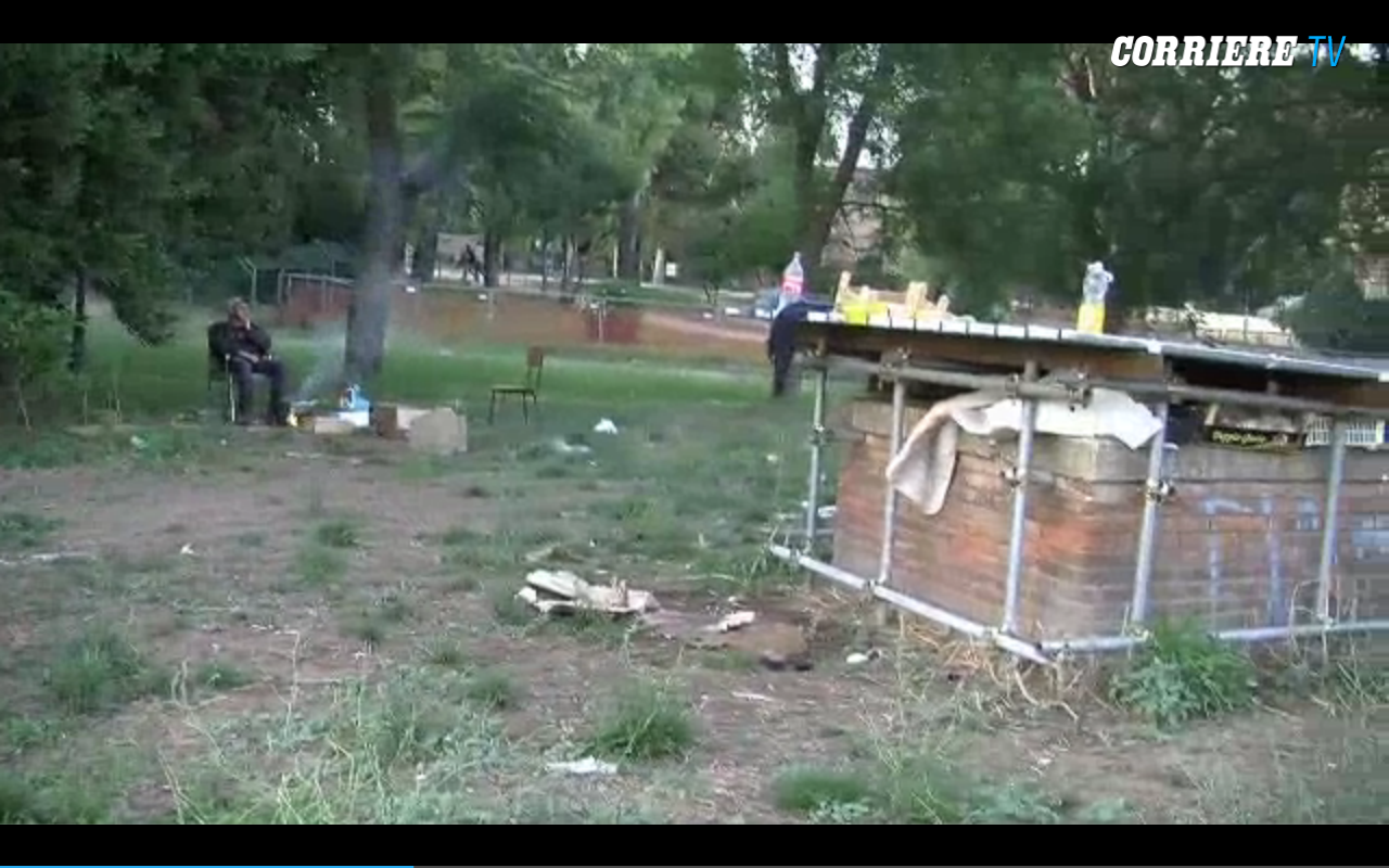 (18 settembre 2014) – Nicolas e Mohammed mangeranno una zuppa di erbe bollite in una pentola di latta. Oggi non hanno i soldi per la pasta. Il fornello giace pericolosamente sul prato a pochi metri da scivoli e altalene. Il panorama è suggestivo: da un lato spunta il Colosseo in tutta la sua maestà dall’altro il sito archeologico di Colle Oppio. Infatti ci troviamo in uno dei parchi più belli e preziosi di Roma . Qui come in tanti altri posti del centro sopravvivono delle persone. Dormono infilati nelle bocche di areazione ai piedi della Domus Aurea, tra i resti delle terme di Traiano e di Tito che hanno trasformato anche in armadi dove conservare coperte, qualche jeans o set di padelle. Questi disperati rifugi vista Colosseo non sono cosa rara.