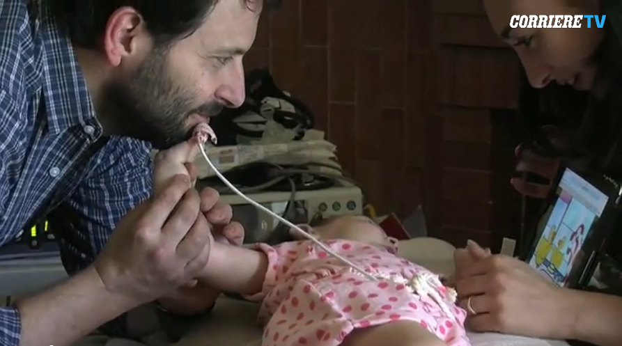 (22 maggio 2015) – Sorride mentre guarda il cartone animato della Pimpa. Prova a muovere le piccole dita come se volesse seguire la musica della sigla e ci riesce. Chissà per quanto tempo ancora… Le gambine e le braccia invece restano ferme. Vittoria è sdraiata sul fianco sul tavolo da cucina, dietro di lei gli apparecchi che ne tengono sotto controllo le funzioni vitali, l’aspiratore e la macchina per la tosse. In un angolo c’è la bombola dell’ossigeno in caso di emergenza. «È la nostra gioia e abbiamo rischiato di perderla tante volte, per questo non possiamo permettere mai più che accada», sospira sua mamma, Sonia. Vittoria ha solo 16 mesi e alle spalle già un calvario fatto di ricoveri ed emergenze. È affetta da Sma di tipo 1, malattia genetica neurodegenerativa a prognosi infausta. La speranza di Gerardo e Sonia è legata ad un farmaco, giunto alla terza fase sperimentale che forse potrebbe permetterle di avere una vita migliore.