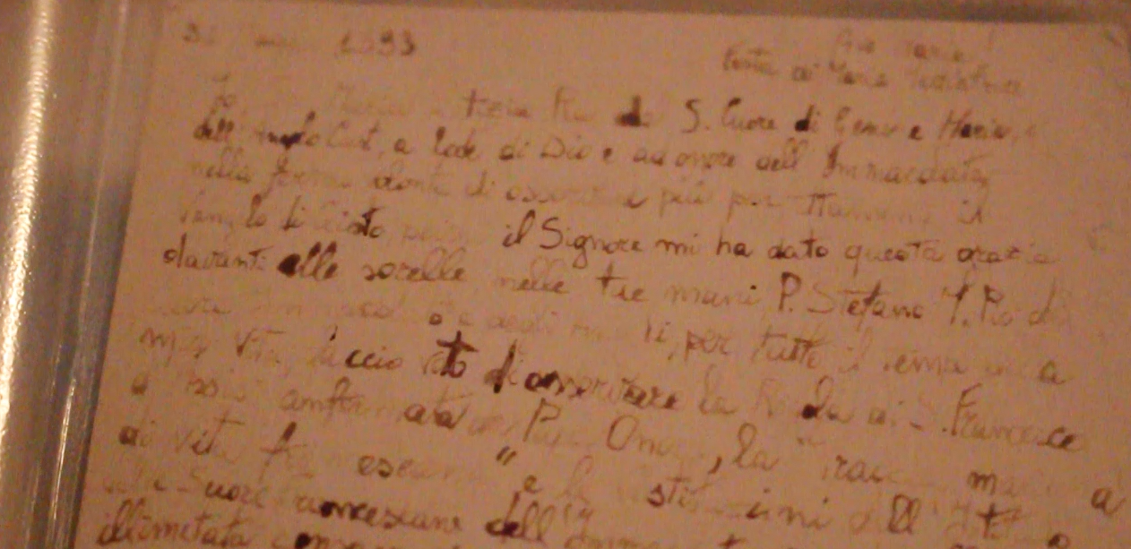 (4 gennaio 2016) – Era il 1996 e lei era una ragazzina. Era entrata nel convento dei francescani dell’Immacolata minorenne, a soli 17 anni con il fervore di cui sono capaci i giovani e quel giorno, dopo solo pochi anni finalmente prendeva i voti. Le sembrò strano ma aveva tanta fiducia nelle sue superiore e in padre Stefano Maria Manelli e così non battè ciglio quando le chiesero di pungersi le dita e intingere il pennino nel sangue per scrivere la sua promessa su una cartolina. Da un lato l’immagine della Madonna, dall’altro la data e 7 righe scritte con una grafia incerta, incorniciate da pois diventati ormai di un rosso bruno. “Si, sono degli schizzi di sangue. Ero emozionata, la mano mi tremava. Era un modo per sentirci legate per sempre a quella vita e al Signore. Lo chiamavamo patto di sangue”.