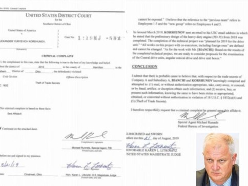 (7 settembre 2019) – Un criminal compliant di 14 pagine, redatto da un agente speciale dell’Fbi, Michael Runnels e corredato da scambi di email ed altre conversazioni intercettate e poche testimonianze, è l’atto di accusa nei confronti di Alexander Yuryvich Korshunov nel quale però si evince una denuncia anche a carico di un italiano, Maurizio Paolo Bianchi. Entrambi sono penalmente coinvolti in una vicenda di spionaggio internazionale insieme con un gruppo di altri italiani, prevalentemente ingegneri ed esperti nella costruzione di motori per l’aviazione civile e militare. Ad indagarli le autorità americane dello Stato dell’Ohio, secondo cui avrebbero sottratto informazioni alla General Electric Aviation, uno dei principali fornitori mondiali di motori aeronautici, per la realizzazione del progetto Pd-14 teso alla costruzione di propulsori per aerei hi-tec. Korshunov è stato arrestato all’aeroporto di Napoli lo scorso 30 agosto mentre sbarcava insieme con sua moglie. I due erano ufficialmente in vacanza ma, stando alle indagini, Korshunov potrebbe essere arrivato a Napoli per incontrare i «consulenti» italiani ingaggiati dalla sua società e che secondo l’Fbi avrebbero passato informazioni industriali riservate. Le autorità statunitensi sembrano concentrarsi infatti proprio sulla figura della “spia”russa, molto vicina al presidente Putin. Stando alla dichiarazione giurata presentata a sostegno della denuncia penale, Korshunov era un dipendente di una società statale russa ed era stato in precedenza un pubblico ufficiale sovietico il cui servizio includeva il ministero degli Affari Esteri e in particolare aveva prestato servizio in un’area di grande interesse strategico come la Turchia.