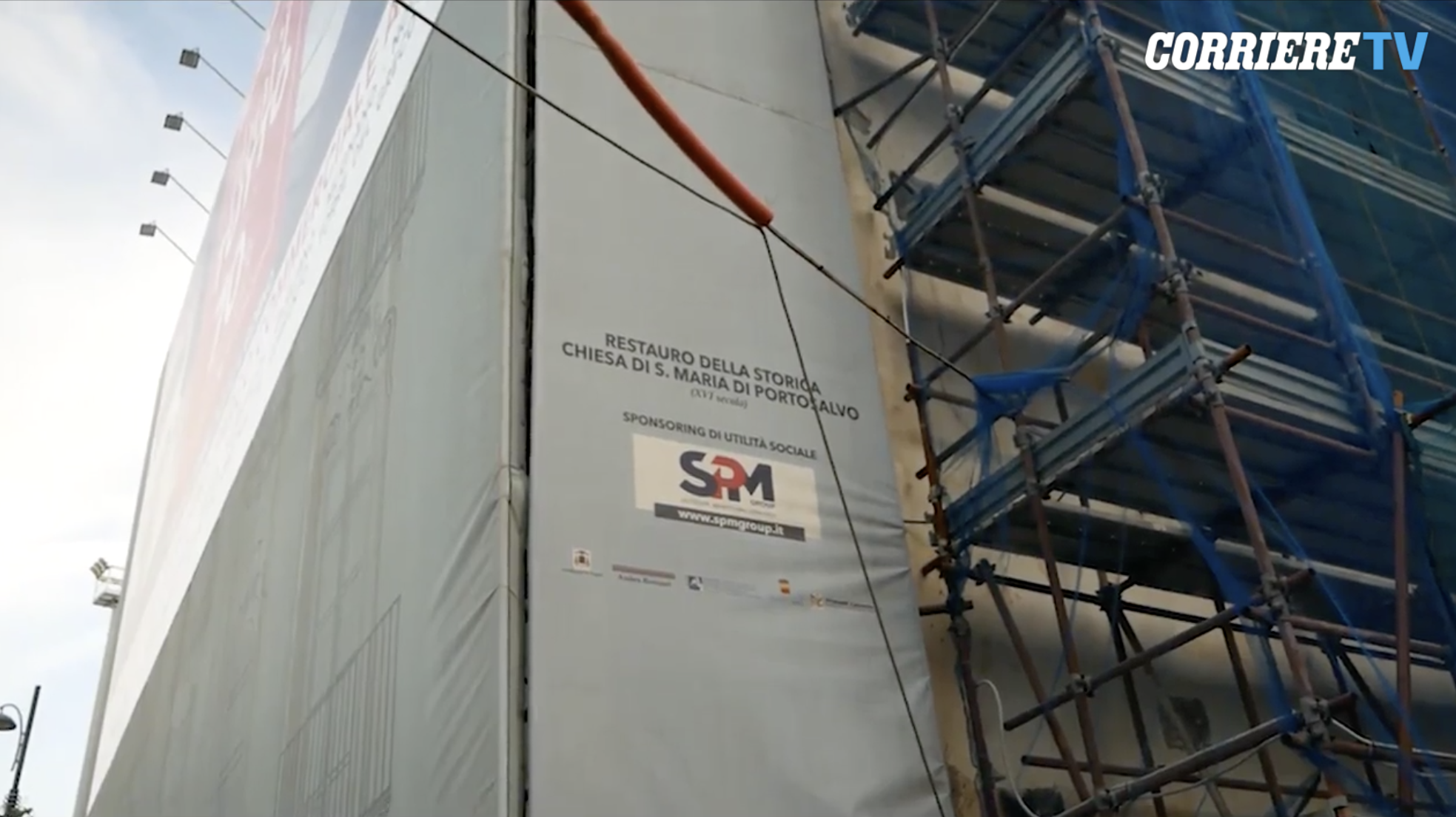 (8 ottobre 2019) – C’era un dipinto di Caravaggio nella chiesa di Santa Maria di Portosalvo. Fu messo in salvo insieme ad altre opere quando nel 2004 il comitato civico che porta il nome della parrocchia, denunciò l’enorme degrado in cui si trovava la struttura del ‘600. «Presto ritornerà in chiesa», assicura ancora un po’ timoroso padre Salvatore Fratellanza che da meno di un paio di anni si occupa dell’Arciconfraternita che gestisce la Chiesa e che per conto della Curia e del Cardinale Crescenzio Sepe sovrintende la gestione del bene, pubblicità e restauro compresi. E proprio pubblicità e restauro sembrano essere la spina nel fianco della chiesa napoletana in questi giorni: la chiesa di Portosalvo è chiusa da trent’anni e da alcuni è transennata da installazioni pubblicitarie su tutt’e quattro i lati. Pubblicità che almeno nelle intenzioni, servirebbe a finanziare il restauro. Solo che la ditta che ha in concessione le affissioni pubblicitarie la Spm è sotto indagine della direzione distrettuale antimafia che dopo un’accurata inchiesta della Dia, ha chiesto e ottenuto il sequestro dell’azienda. L’accusa è molto grave e cioè di aver agevolato attività di riciclaggio e favorito il clan dei casalesi e in particolare di Mario Iavarazzo, considerato dagli inquirenti il cassiere del clan. Gli uomini della Direzione investigativa antimafia a metà luglio hanno eseguito undici arresti nell’ambito delle indagini sulla Spm e su Iavarazzo.