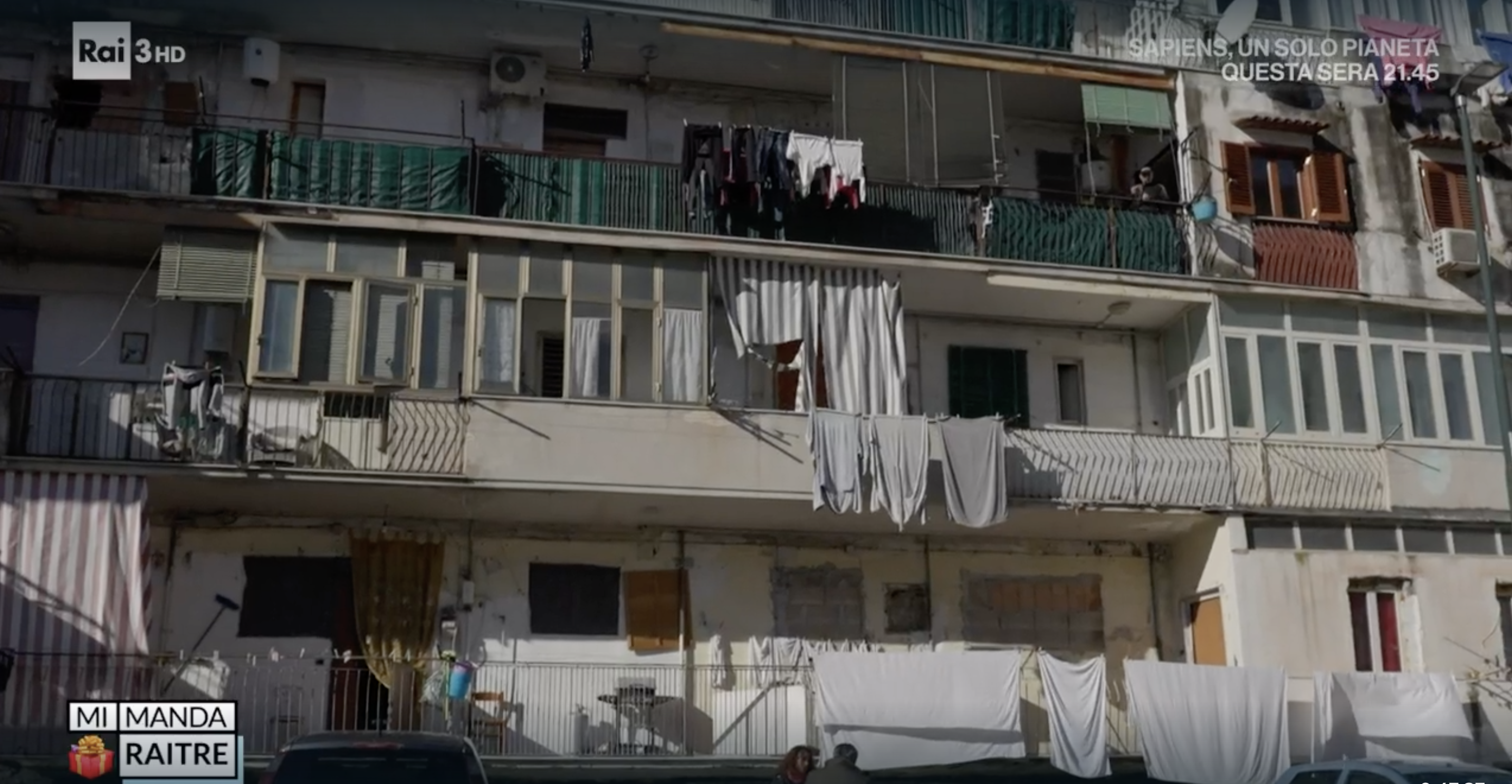 Ve la ricordate la casa della novantenne occupata nella zona di Pizzofalcone a Napoli? Ecco come sono entrati: usando un flex per scardinare un cancello (strano che nessuno abbia sentito e visto niente, caspita che isolamento acustico queste vecchie case!). Chi è stato? Il cognome lo potete leggere sui muri del quartiere insieme a quello di un altro clan. Se avete la pazienza di seguirci su Rai tre – Mi Manda Rai Tre, vi faremo sentire un po’ di testimonianze, vedremo come hanno ridotto la casa della signora e cosa risponde il comune, oltre alla denuncia di Francesco Emilio Borrelli.